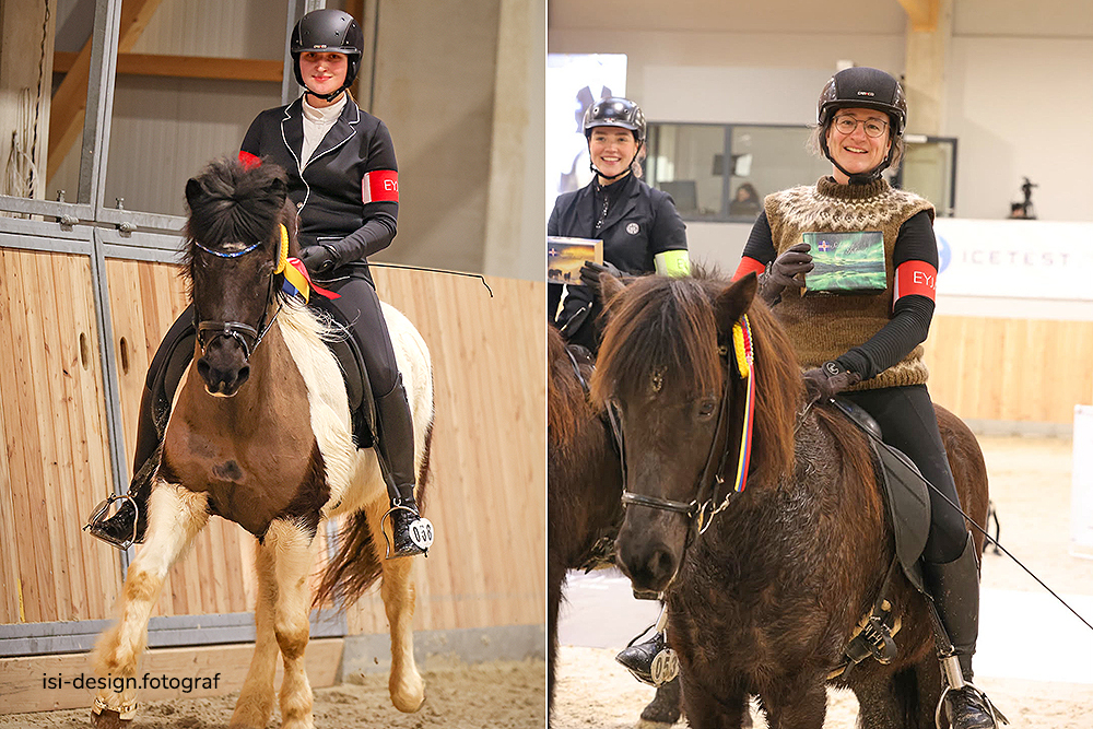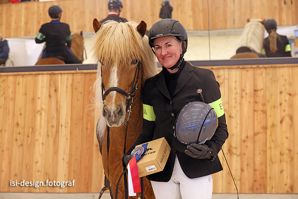 Wir gratulieren ganz herzlich den Siegerinnen und Siegern von Münster: in den Preisprüfungen als Gewinner der kostbaren Wanderpokale von SIGN aus Hafnarfjörður sind das Susanne Birgisson & Kári von der Hartmühle (T1, dotiert mit einem Sattel von Hrímnir), Daniel Rechten & Sólfari frá Fjórum (T1 YR), Rike Wolf & Víkingur frá Hofsstaðaseli (T2, von VetArt dotiert mit einem Decksprung von Abel fra Tyrevoldsdal), Dominique Dorn & Myrkvi vom Kronshof (T2 YR), Irene Reber & Kjalar vom Hagenbuch (V1, dotiert mit einem Sattel von TopReiter), Tabitha Hoffeld & Dagur vom Forstwald (V1 YR), Lilja Thordarson & Skúli frá Árbæjarhjáleigu II (F1, dotiert mit einem Sattel von EQUES) und Indira Scherrer & Dugur frá Ketilsstöðum (F1 YR).