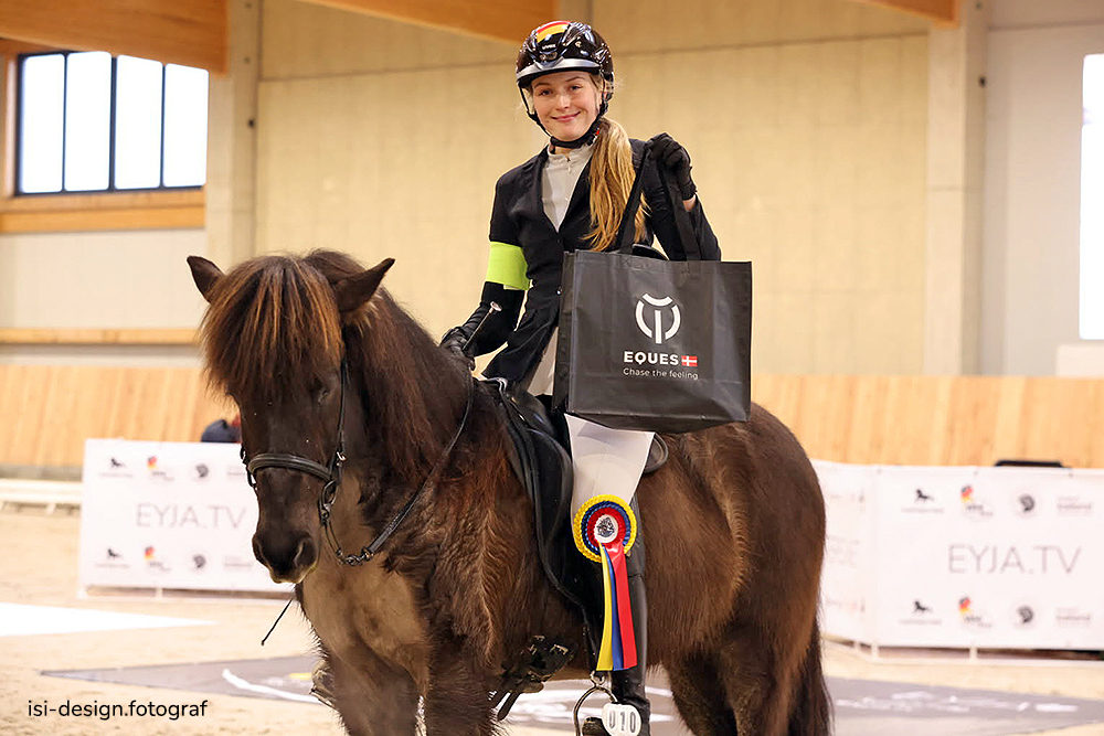 Gratulieren dürfen wir Marilyn Thoma zum Doppelsieg in T1 und T2, während die goldenen Schleifen in V1 und F1 an Karolin Waterstraat und Elias Þórhallsson gingen. Beste Young Riders in den Preisprüfungen waren Dominique Dorn in T2, F1 und T1, dazu Emilia Stegner im Viergangpreis. Von T3 bis F2 waren Katrin Reinert und Lena Bachmann, Anke Schorn und Maria-Chiara Timm (auch V2), Michaela Schaefer bzw. Nele Schütz und abermals Lena Bachmann erfolgreich. T7 und V5 gewannen Vanessa Fee Ulrich (beide Prüfungen) und Zoe Bauer bzw. Manuel Hammann. Den Feather Prize erhielt von der Jury die 11-jährige Luisa Fischer zugesprochen – für ganz erfrischende Ritte voller Harmonie und Esprit!